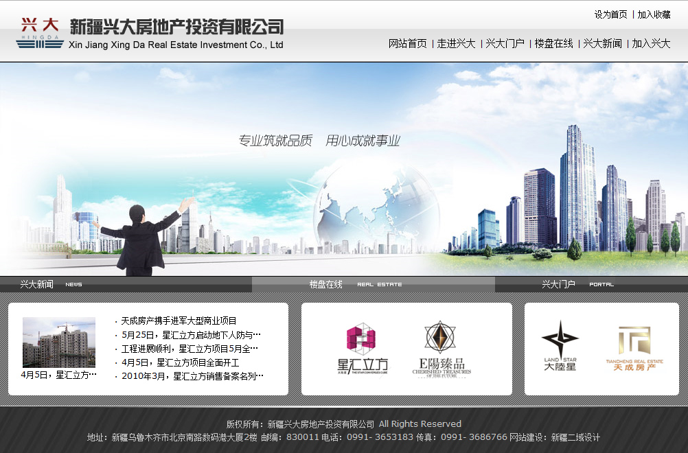 新疆興大房地產(chǎn)投資有限公司成立于2010年12月13日,是一家主營(yíng)房地產(chǎn)項(xiàng)目投資、開(kāi)發(fā)、經(jīng)營(yíng)的專業(yè)地產(chǎn)投資開(kāi)發(fā)公司。2010年,在新疆大陸星房地產(chǎn)開(kāi)發(fā)有限公司與新疆天成房地產(chǎn)開(kāi)發(fā)有限公司兩家房地產(chǎn)開(kāi)發(fā)公司的聯(lián)合倡導(dǎo)下,在源自于兩家房產(chǎn)公司已建、在建、擬建項(xiàng)目的基礎(chǔ)上,為了企業(yè)良性持續(xù)的長(zhǎng)遠(yuǎn)發(fā)展,重新整合資源,在積極引入新的資金及集團(tuán)企業(yè)支持的情況下,通過(guò)成立新疆興大房地產(chǎn)投資有限公司,從而實(shí)現(xiàn)對(duì)兩家房產(chǎn)開(kāi)發(fā)公司的控股及資金注入。