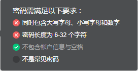 新密碼需滿足以下要求:
